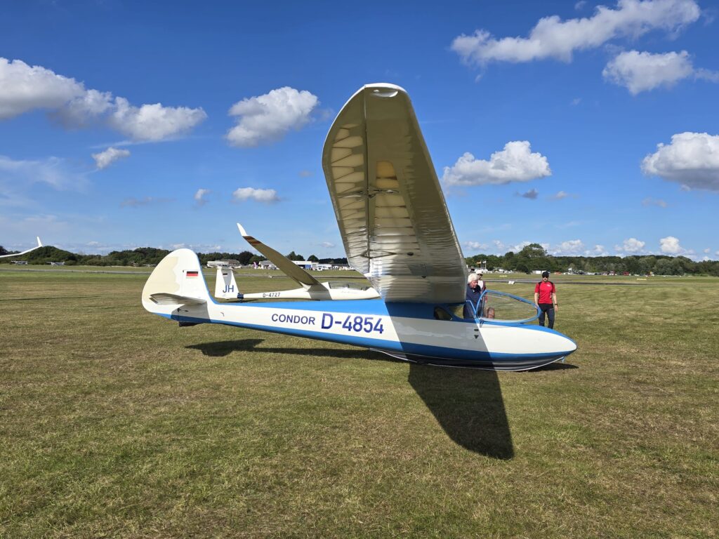 Oldtimer zu Besuch Beitrags-Autor:Lennart Weber Beitrag veröffentlicht:7. September 2025 Beitrags-Kategorie:Aktuelles Zu unserem 75-jährigen Vereinsjubiläum waren nicht nur Motorflugzeuge, sondern auch das ein oder andere Segelflugzeug zu Besuch. Ein besonderer Hingucker war die D-4854, eine Condor IV aus den 1950er Jahren. Das könnte dir auch gefallen 75 Jahre Luftsportverein Flensburg 7. September 2025 Rallye zwischen den Meeren 16. Dezember 2021 Besuch vom Nikolaus am 07.12.2025 um 14:00 Uhr 9. Oktober 2025